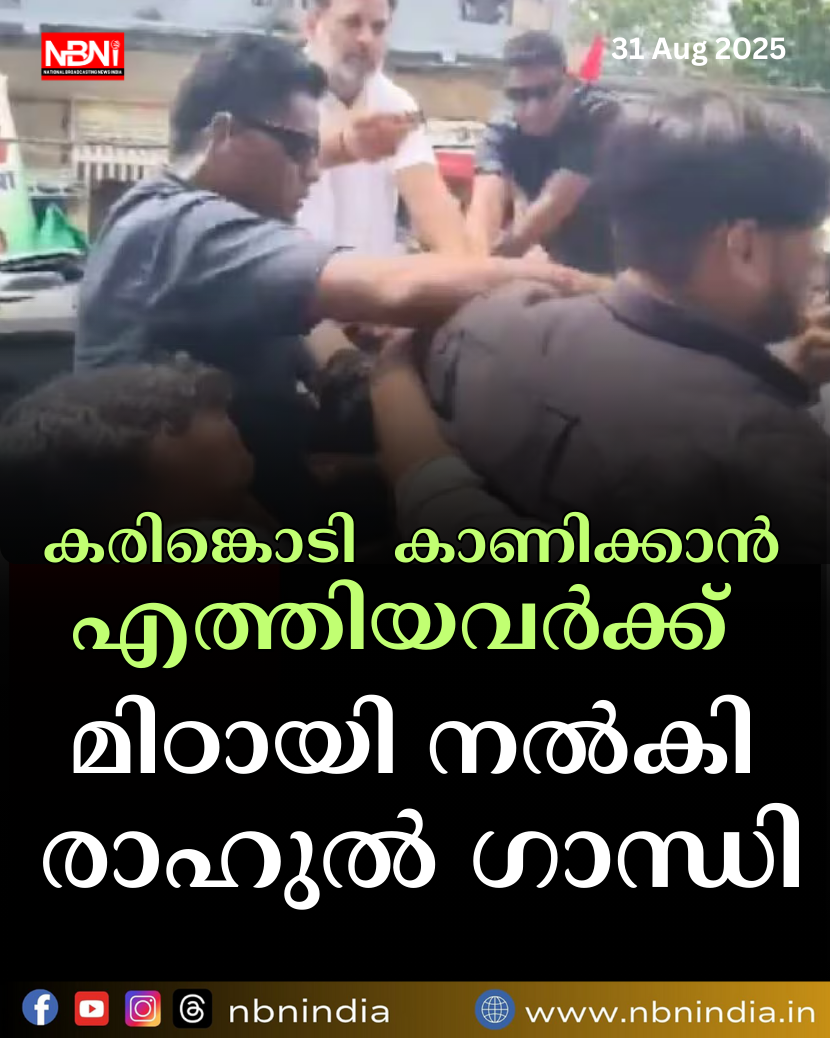 വോട്ട് അധികാർ യാത്ര റാലിക്കിടെ കരിങ്കൊടി കാണിക്കാൻ എത്തിയവർക്ക് മിഠായി നൽകി രാഹുൽ ഗാന്ധി