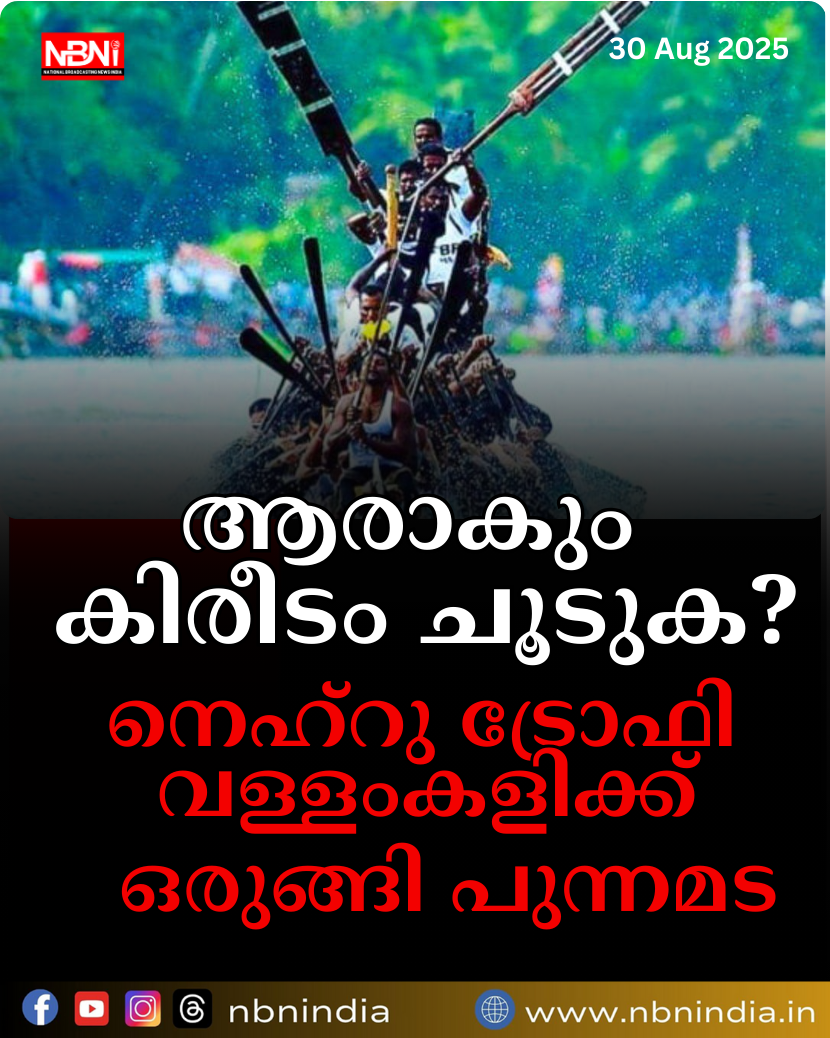 ആരാകും കിരീടം ചൂടുക? നെഹ്റു ട്രോഫി വള്ളംകളിക്ക് ഒരുങ്ങി പുന്നമട ആലപ്പുഴ: കേരളത്തിന്റെ അഭിമാനമായ നെഹ്റു ട്രോഫി വള്ളംകളിക്ക് ഇന്ന് പുന്നമടയിൽ ഭംഗിയായ അരങ്ങേറ്റം. ഉച്ചയ്ക്ക് 2 മണിയോടെ മുഖ്യമന്ത്രി പിണറായി വിജയൻ ഔപചാരികമായി മത്സരങ്ങൾക്ക് തുടക്കമിടും. ഈ വർഷം 75 വള്ളങ്ങൾ ട്രോഫിക്കായി കടുത്ത പോരാട്ടത്തിനിറങ്ങുന്നു. നാട്ടുകാർക്കും വിനോദസഞ്ചാരികൾക്കും ഒരുപോലെ ആവേശം നിറക്കുന്ന വള്ളംകളി, കേരളത്തിന്റെ സംസ്കാരവും