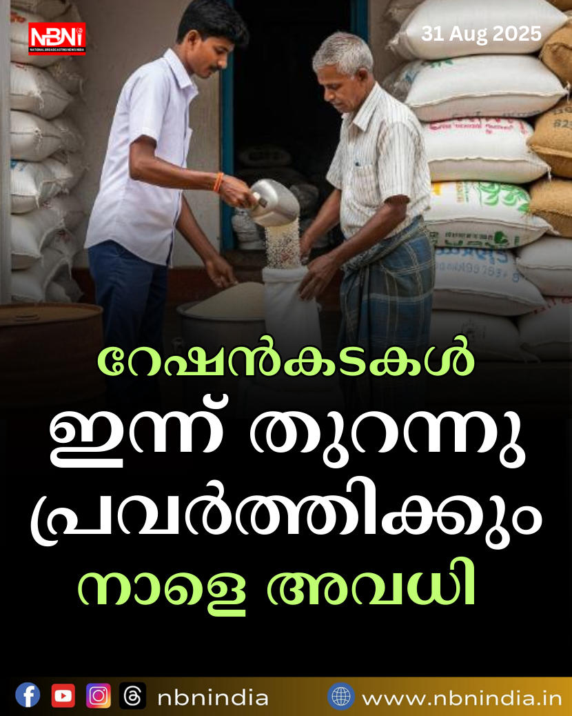 റേഷൻകടകൾ ഇന്ന് തുറന്നു പ്രവർത്തിക്കും.