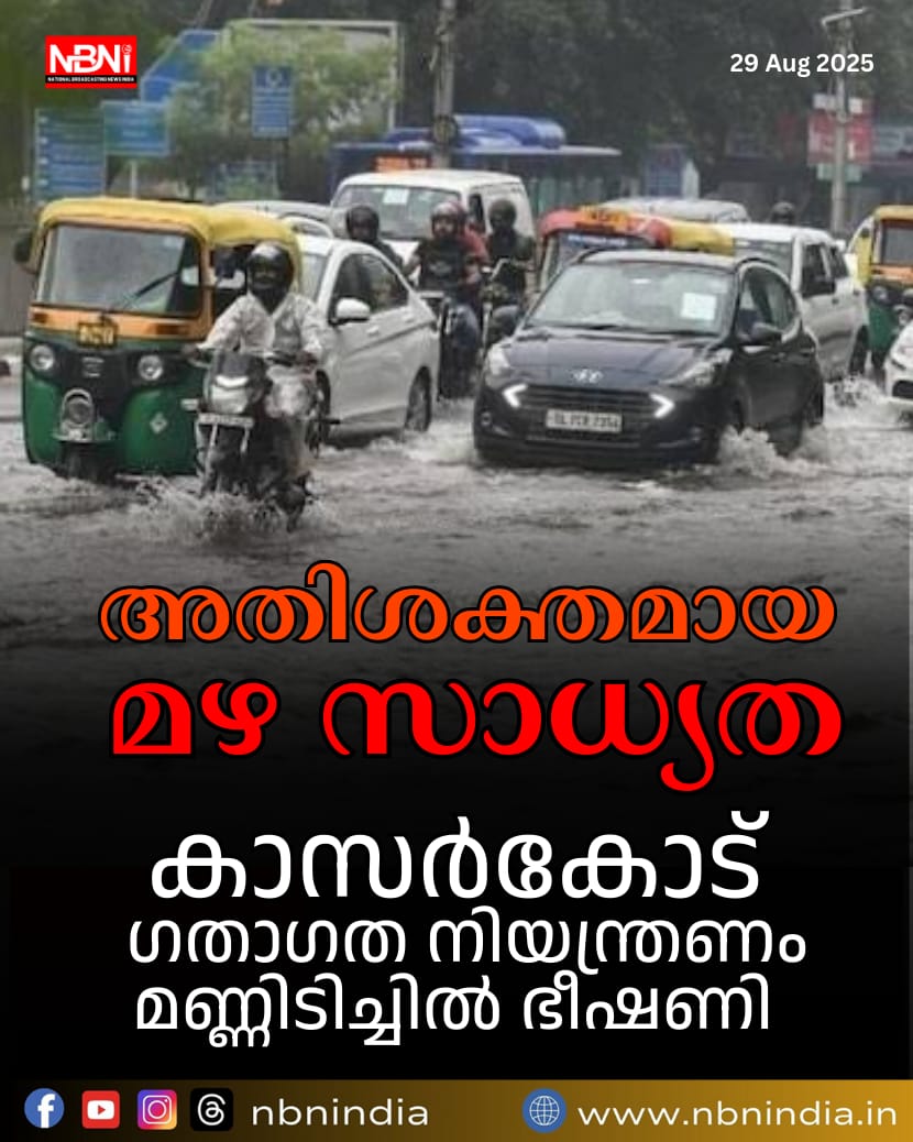 കനത്ത മഴ; മണ്ണിടിച്ചിൽ ഭീഷണി, കാസർകോട്ടിൽ ഗതാഗത നിയന്ത്രണം കാസർകോട്: വടക്കൻ കേരളത്തിൽ കനത്ത മഴ തുടരുകയാണ്. വീരമലക്കുന്ന്, ബേവിഞ്ച ഭാഗങ്ങളിൽ മണ്ണിടിച്ചിൽ സാധ്യത ഉയര്ന്നതിനാൽ വാഹന ഗതാഗതത്തിന് നിയന്ത്രണം ഏർപ്പെടുത്തി. കടലിൽ കാറ്റും തിരയും ശക്തമായതിനാൽ മത്സ്യബന്ധനത്തിന് വിലക്ക് പ്രഖ്യാപിച്ചിട്ടുണ്ട്. മത്സ്യത്തൊഴിലാളികൾ സമുദ്രത്തിലേക്ക് പോകാതിരിക്കാൻ ജില്ലാ ഭരണകൂടം മുന്നറിയിപ്പ് നൽകി. അപകട സാധ്യതയുള്ള പ്രദേശങ്ങളിൽ നിന്ന് മാറി നിൽക്കാനും,