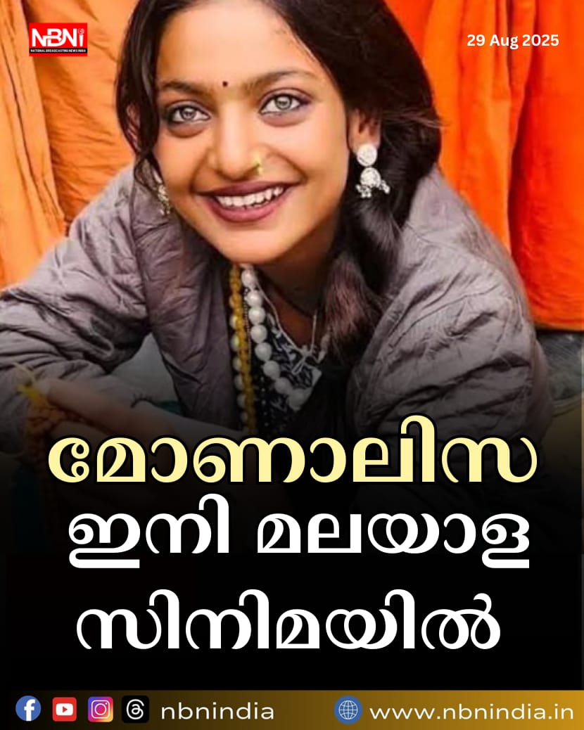 മോണാലിസ ഇനി മലയാള സിനിമയിൽ തിരുവനന്തപുരം: മഹാകുംഭമേളയ്ക്കിടെ മാലകൾ വിൽക്കുന്നതിനിടെ വൈറൽ താരമായ 16 കാരി മോണാലിസ ഭോസ്ലെ മലയാള സിനിമയിലെ നായികയായി അരങ്ങേറ്റത്തിന് ഒരുങ്ങുന്നു. മോണാലിസ നായികയായെത്തുന്ന പുതിയ മലയാള സിനിമയാണ് "നാഗമ്മ". "നീലാത്താമര" സിനിമയിലൂടെ ശ്രദ്ധ നേടിയ നടൻ കൈലാഷിനൊപ്പമാണ് മോണാലിസ അഭിനയിക്കുന്നത്. ചിത്രത്തിന്റെ പൂജ ചടങ്ങിൽ നിന്ന് മോണാലിസ സോഷ്യൽ മീഡിയയിൽ പങ്കുവച്ച ചിത്രങ്ങൾ ഇതിനോടകം