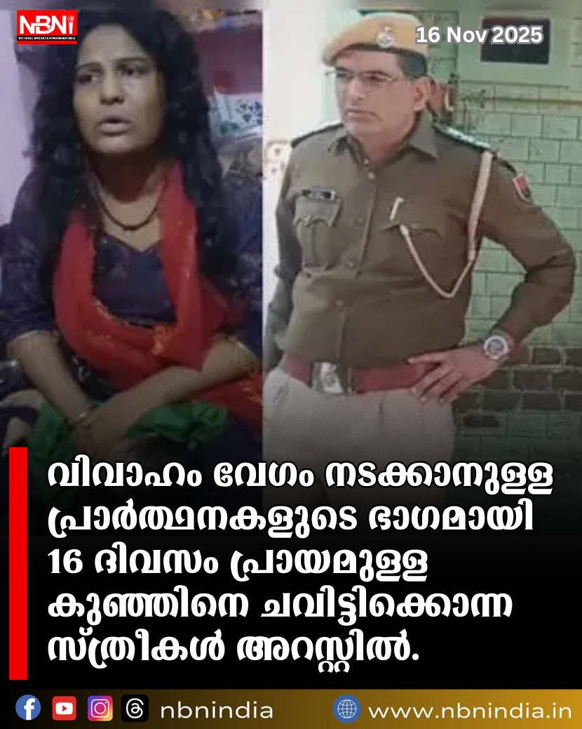 വിവാഹം വേഗം നടക്കാനുള്ള പ്രാര്ത്ഥനകളുടെ ഭാഗമായി 16 ദിവസം പ്രായമുള്ള കുഞ്ഞിനെ ചവിട്ടിക്കൊന്ന സ്ത്രീകള് അറസ്റ്റില്