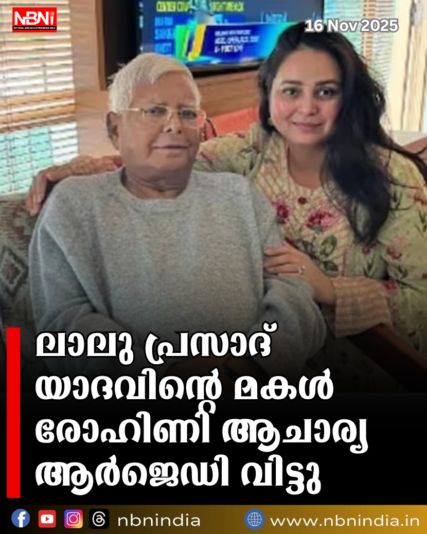 ലാലു പ്രസാദ് യാദവിന്റെ മകള് രോഹിണി ആചാര്യ ആര്ജെഡി വിട്ടു