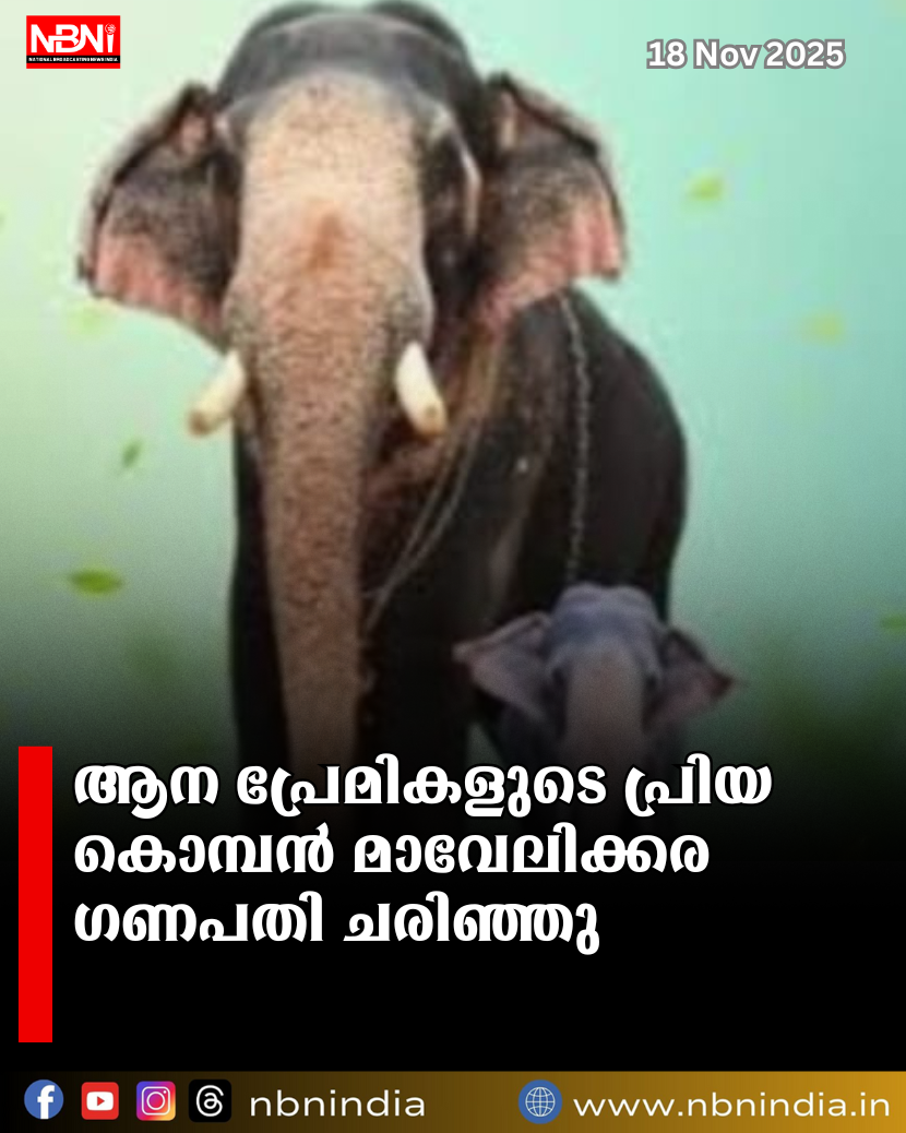 ആന പ്രേമികളുടെ പ്രിയ കൊമ്പൻ മാവേലിക്കര ഗണപതി ചരിഞ്ഞു