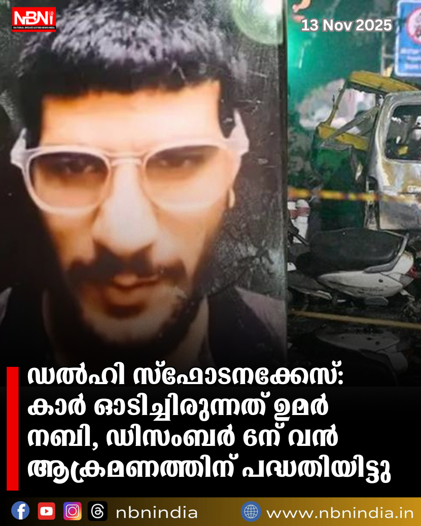 ഡൽഹി സ്ഫോടനക്കേസ് പ്രതി ഡോ. ഉമർ നബിതന്നെയാണ് കാർ ഓടിച്ചിരുന്നതെന്ന് സ്ഥിരീകരീകരണം