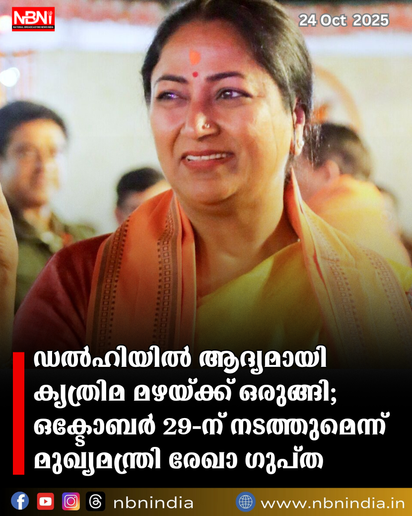 ഡൽഹി മുഖ്യമന്ത്രി രേഖാ ഗുപ്ത അറിയിച്ചതനുസരിച്ച്, ഒക്ടോബർ 29-ന് നഗരം ആദ്യത്തെ വിജയകരമായ കൃത്രിമ മഴ ശ്രമത്തിന് ഒരുങ്ങുകയാണ്. ബുരാരിയിലെ പരീക്ഷണ പറക്കലിനുശേഷം ഐഐടി കാൺപൂരും ഐഎംഡിയും (ഇന്ത്യൻ കാലാവസ്ഥാ വകുപ്പ്) ക്ലൗഡ് സീഡിംഗിനുള്ള (കൃത്രിമ മഴയ്ക്കുള്ള) സജ്ജീകരണങ്ങൾ സ്ഥിരീകരിച്ചു. പുകമഞ്ഞ് കുറയ്ക്കാനും വായുവിന്റെ ഗുണനിലവാരം മെച്ചപ്പെടുത്താനുമാണ് ഈ നടപടി ലക്ഷ്യമിടുന്നത്