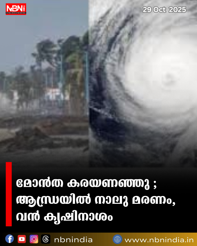 മോൻത കരയണഞ്ഞു ; ആന്ധ്രയിൽ നാലു മരണം, വൻ കൃഷിനാശം