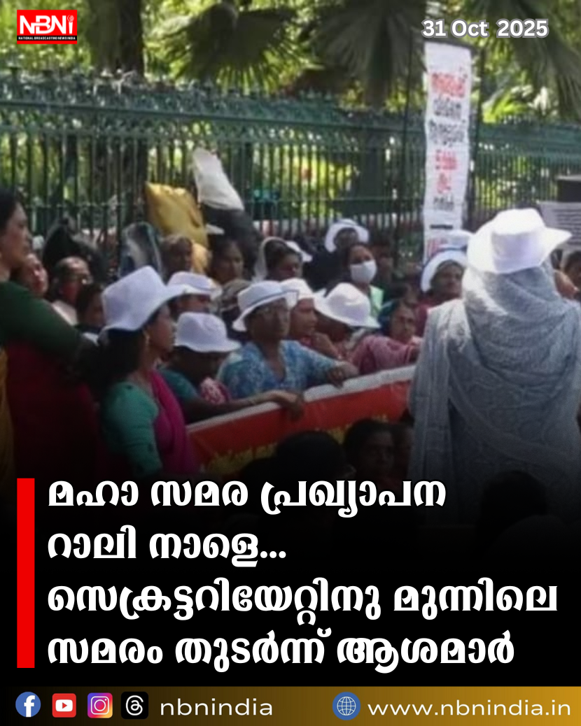 മഹാ സമര പ്രഖ്യാപന റാലി നാളെ…സെക്രട്ടറിയേറ്റിനു മുന്നിലെ സമരം തുടർന്ന് ആശമാർ