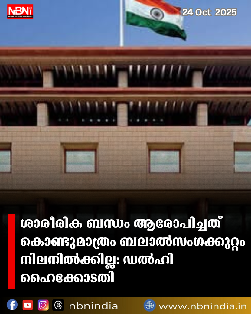 ശാരീരിക ബന്ധം ആരോപിച്ചത് കൊണ്ടുമാത്രം ബലാല്സംഗക്കുറ്റം നിലനില്ക്കില്ല: ഡല്ഹി ഹൈക്കോടതി